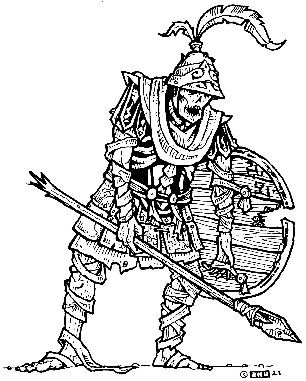 The people of Inba Iro burn their dead, believing the soul can only return to the eternal gods if so liberated from the prison of the flesh. For this reason, the priests of Jilho the Protector deny condemned lawbreakers cremation. Through sorcery, they instead compel them to serve after execution as guardians of the upper levels of the Vaults. Only fire can permanently end a dritlor's earthly bondage or else it reanimates not long after its apparent destruction.